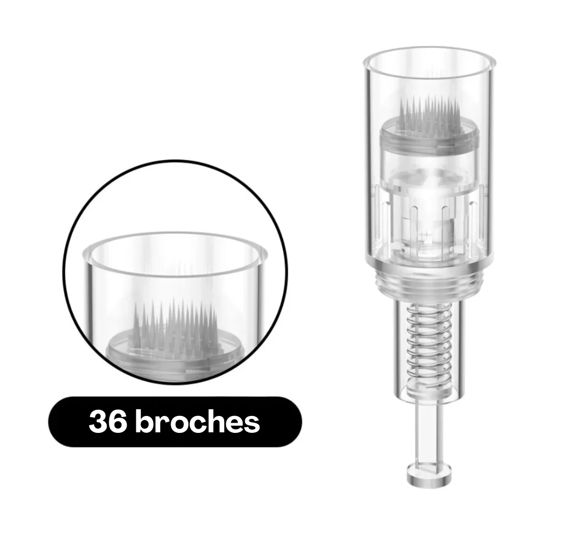 La cartouche 36 broches offre un traitement doux et uniforme, idéale pour les zones larges comme le visage, le cou ou le corps. Elle aide à rajeunir la peau, à améliorer la texture, à réduire les ridules et à favoriser l’absorption des soins.