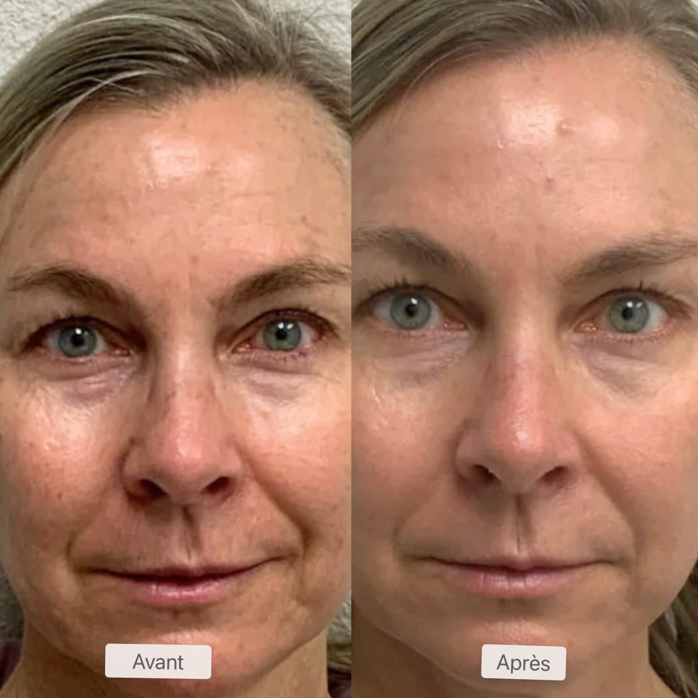 « J’étais sceptique, mais après quelques séances, mes ridules se sont adoucies et ma peau est visiblement plus ferme et plus lisse. »
