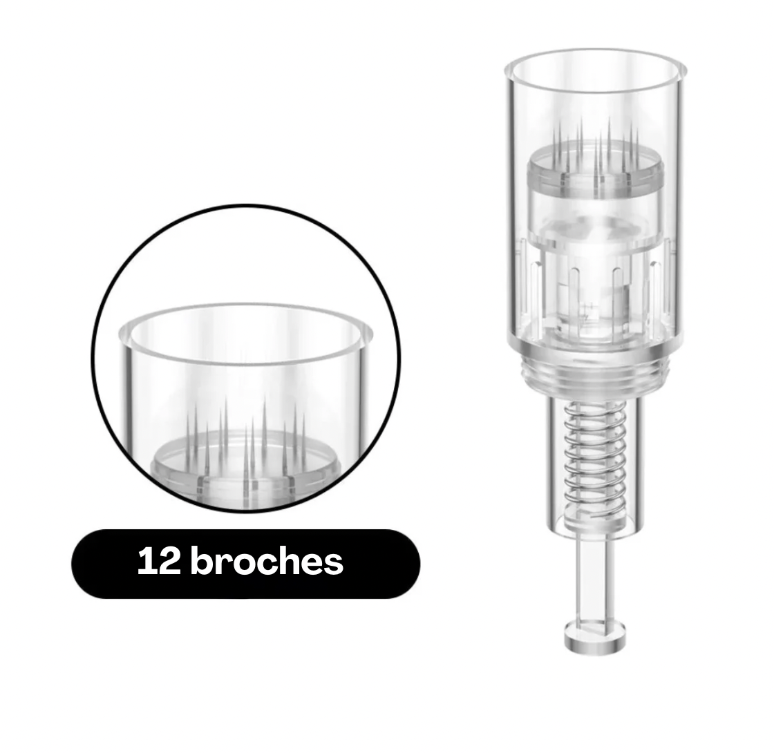 La cartouche 12 broches permet une pénétration plus profonde. Le soin est plus intense car il y a moins d’aiguilles. Idéale pour les zones ciblées. Parfaite pour les rides profondes et cicatrices d’acné. Favorise une production de collagène renforcée.